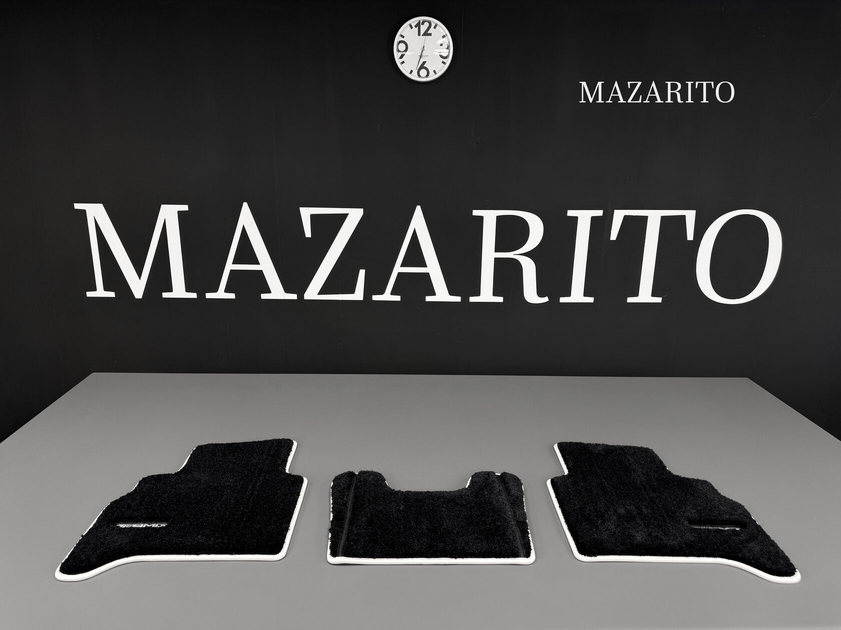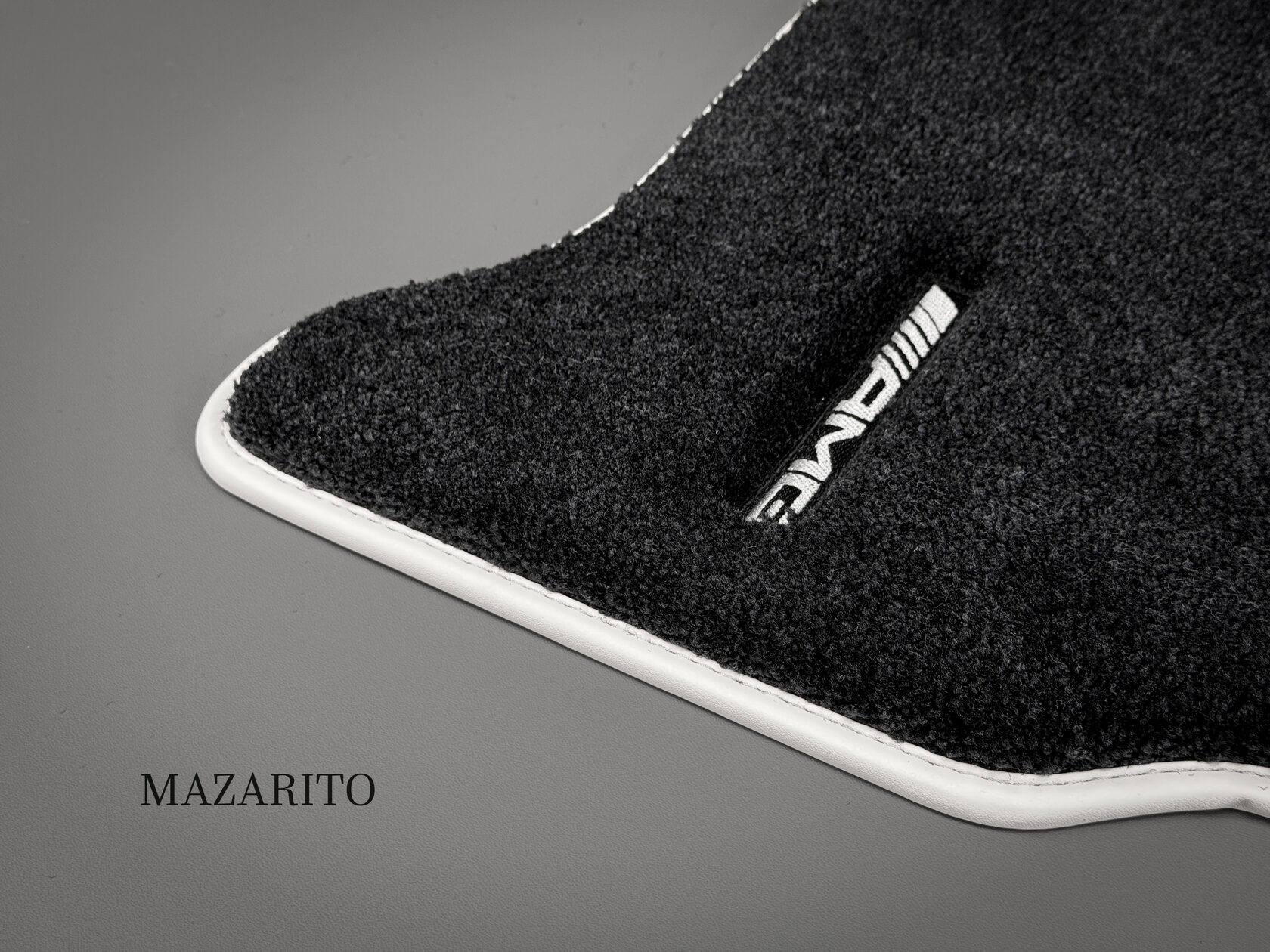 Для сохранения оригинального стиля было принято решение вышить классические лого AMG на всех 4-х коврах.